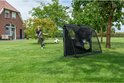 Lekker stevig doel. Met paaltjes in de grond zodat het goed stevig blijft staan en makkelijk los te halen als het gras gemaaid moet worden.