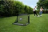 Het robuuste zwarte frame van het voetbaldoel is gegalvaniseerd en gepoedercoat voor een lange levensduur en het fijnmazige net is hier op innovatieve wijze aan bevestigd, de bal kan hierdoor niet tussen het frame en het net doorschieten. En is schieten in het voetbaldoel geen uitdaging meer voor je? Hang dan het trainingsscherm met schietgaten in het doel voor meer uitdaging.