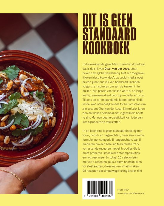 In dit boek vind je geen standaardindeling met voor-, hoofd- en nagerechten, maar een slimme formule: per categorie 5 topgerechten. Van 5 manieren om een hele kip te bereiden tot 5 verrassende recepten met ei, broodjes die je móét proberen, smaakvolle stoompakketjes en nog veel meer. In totaal 16 categorieën met elk 5 recepten, plus 3 extra hoofdstukken vol steaksauzen, dressings en smaakmakers: 98 recepten die simpelweg f*cking lecqer zijn!