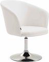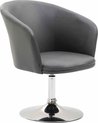 Hij heeft een opvallende rugleuning dat overgaat in één armleuning. Weetje: u kunt de stoel 360 graden draaien. Het frame van metaal met een chromen look rondt niet alleen het design af, maar zorgt ook voor stabiliteit.