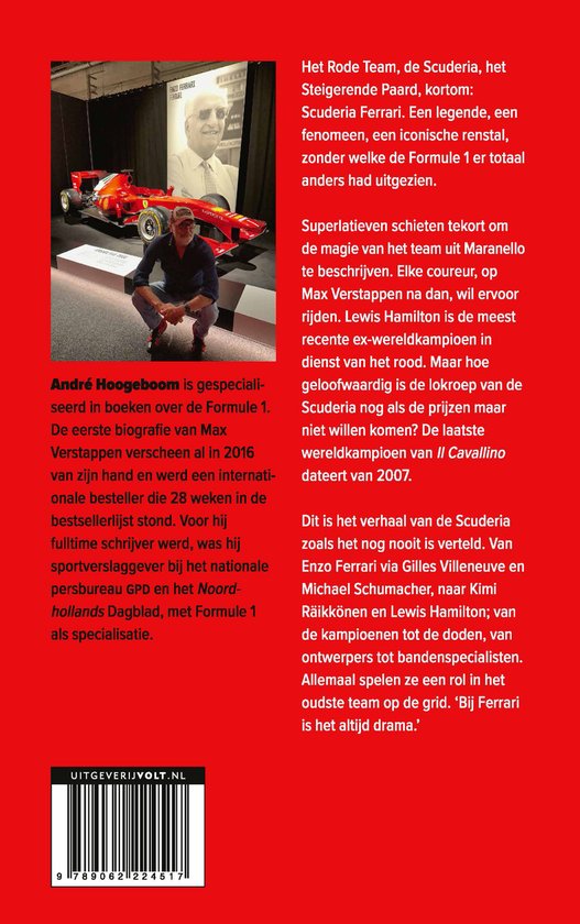 Dit boek vertelt het verhaal van de Scuderia zoals dat nog nooit is verteld. Van Enzo Ferrari via Gilles Villeneuve en Michael Schumacher, naar Kimi Raikonen en Lewis Hamilton; van de kampioenen tot de doden, van ontwerpers tot bandenspecialisten. Allemaal spelen ze een rol in het oudste team op de grid. ‘Bij Ferrari is het altijd drama.’
