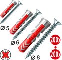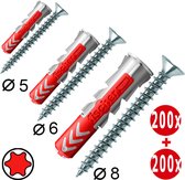 - 400-delige set: 200 pluggen + 200 kruiskopschroeven (PZ2/PZ3)