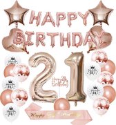 Fissaly 21 Jaar Rose Goud Verjaardag Decoratie Versiering - Helium, Latex & Papieren Confetti Ballonnen