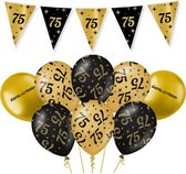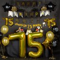 Fissaly 75 Jaar Verjaardag Decoratie Versiering - Ballonnen – Helium, Latex & Papieren Confetti Ballonnen- Zwart en Goud