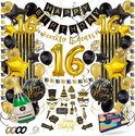 Fissaly Sweet 16 Jaar Zwart & Goud Verjaardag Decoratie Versiering - Helium, Latex & Papieren Confetti Ballonnen