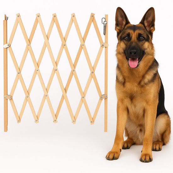 Flamingo Veiligheidshek "Monti" – Beige – Verstelbaar van 60-107 cm Breed x 72,5-83 cm Hoog – Veilig Afsluithek voor Huisdieren