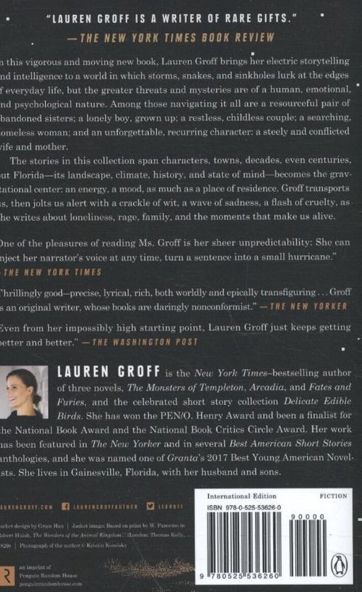 The stories in this collection span characters, towns, decades, even centuries, but Florida -- its landscape, climate, history, and state of mind -- becomes its gravitational center: an energy, a mood, as much as a place of residence. Groff transports the reader, then jolts us alert with a crackle of wit, a wave of sadness, a flash of cruelty, as she writes about loneliness, rage, family, and the passage of time. With shocking accuracy and effect, she pinpoints the moments and decisions and connections behind human pleasure and pain, hope and despair, love and fury -- the moments that make us alive.