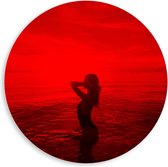 KuijsFotoprint - Schilderij - Meisje Onder Rode Paraplu - Zwart En Rood - 80 X 80 Cm