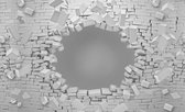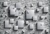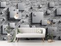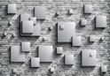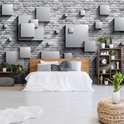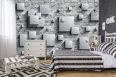 Fotobehang - Vlies Behang - 3D Vierkanten op Bakstenen Muur - 368 x 254 cm