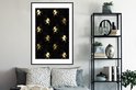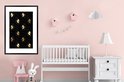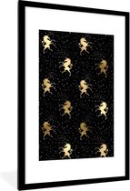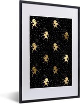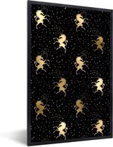 Zwarte poster met een patroon met gouden eenhoorns..Productspecificaties