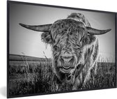Fotolijst incl. Poster - Schotse hooglander - Dier - Zwart - wit - 120x80 cm - Posterlijst