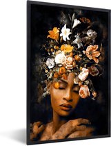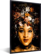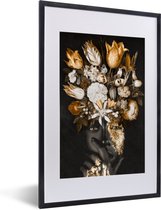Fotolijst incl. Poster - Vrouwen - Bloemen - Goud - 30x40 cm - Posterlijst