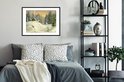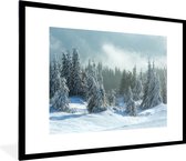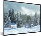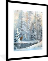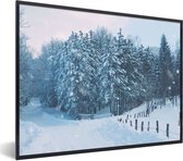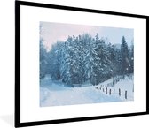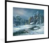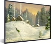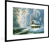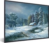 Fotolijst incl. Poster - Winter - Landschap - Huis - Bos - 80x60 cm - Posterlijst - Kerstmis Decoratie - Kerstversiering - Kerstdecoratie Woonkamer - Kerstversiering - Kerstdecoratie voor binnen - Kerstmis