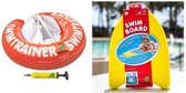 DE VEILIGE BABY ZWEMBAND | De Zwemtrainer is een veilige, leerzame en gebruiksvriendelijke speciale opblaasbare zwemband en laat baby's al snel op een vertrouwde manier kennis maken met water en zwemmen. Geschikt voor kinderen van 3 maanden tot 4 jaar (6kg-18kg). Door het zwemtuigje met opblaasbaar buikstuk en de gemakkelijke veiligheidsgordel met clipsluiting kan de baby niet onderuit zakken of kantelen. Ouders hoeven dus niet continue hun kind vast te houden. Het buikstuk geeft automatisch de natuurlijke buikligging aan en zorgt voor een natuurlijke en actieve zwemhouding.