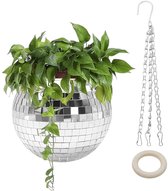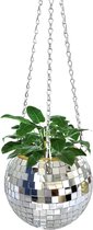 MikaMax Funky Disco Plantenpot - Spiegeldiscobal 13x18x20 cm - Ophangoog & Staand - Inclusief Ketting & Extra Spiegeltjes - Voor Binnen & Buiten