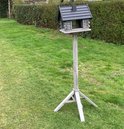 Heel leuk huisje. De vogels zijn er dol op! Alleen op den duur gaat de bodem naar boven krom staan, omdat de poot aan de bodem alleen is bevestigd en niet aan de hele onderkant. Het gewicht van het huisje laat dus de bodem omhoog komen. Oplossing: de poot losmaken, een plaat onder het hele huisje maken en de poot weer bevestigen.