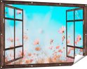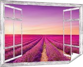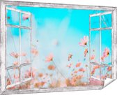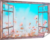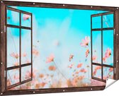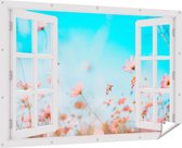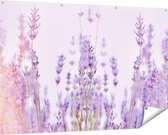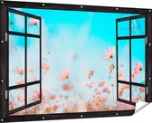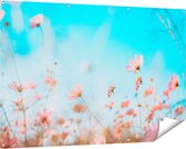 Gards Tuinposter Doorkijk Paarse Kosmos Bloemen - 150x100 cm - Tuindoek - Tuindecoratie - Wanddecoratie buiten - Tuinschilderij