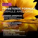 Tot 100% grijsdekking; Zonder ammoniak* Kleurcrème op basis van 60% oliën; Verbetert zichtbaar de haarkwaliteit Optimaal comfort voor de hoofdhuid Intense verzorging; Langhoudende en stralende kleur vol glans Maakt het haar zachter en tot 3x glanzender** Zonder siliconen*** Vegan formule**** *Voor een aangename geur **Instrumentele test ***Voor een natuurlijk gevoel ****Zonder ingrediënten of bijproducten van dierlijke oorsprong