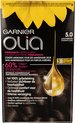 Geschreven bij: Garnier Olia Lichtbruin 5 - Permanente Haarkleuring Zonder Ammoniak - Kleurcrème op basis van 60% oliën - Haarverf