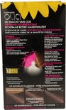Garnier Olia is een permanente haarkleuring op basis van oliën. Door het Oil Delivery System dringt de kleur tot diep in het hart van de haarvezels door voor een intense kleur met verschillende nuances en een stralend, langhoudend resultaat. Deze kleuring dekt tot 100% van de grijze haren en bevat geen ammoniak, voor een aangename geur tijdens het kleuren. In de verpakking van Olia vind je 5 componenten: de kleurcrème, de ontwikkelcrème, de nabehandeling, de gebruiksaanwijzingen en een paar handschoenen. De kleurcrème van Olia bestaat voor 60% uit oliën om een optimaal kleurresultaat te bereiken. Daarnaast verbetert de verzorgende formule zichtbaar de haarkwaliteit voor zachter en tot 3x glanzender haar*. Het is ook gemakkelijk om deze haarkleuring thuis aan te brengen dankzij de fluweelzachte textuur van het kleurmengsel dat niet drupt. De nabehandeling bevat geen siliconen. Daardoor blijft je haar na de verzorgende behandeling natuurlijk aanvoelen. In de tube met de nabehandeling zit voldoende formule voor meerdere applicaties. Gebruik het om je haar tot de volgende kleuring goed te verzorgen. *Instrumentele tests