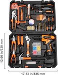Deze gereedschapsset bestaat uit 146 onderdelen en omvat alles van hamers en schroevendraaiers tot tangen en meetlinten. Hij is geweldig voor allerlei huishoudelijke reparaties, doe-het-zelfprojecten en auto-onderhoudstaken.