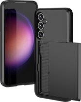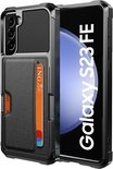 Geschikt voor Samsung Galaxy S23 FE - Pasjes houder Hoesje – Pasjes houder Hoesje - Heavy Duty Case - Magnetisch Portemonnee Hoesje Cover - Zwart