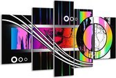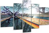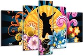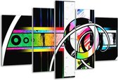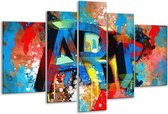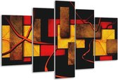 Glasschilderij Abstract - Rood, Blauw, Geel - 170x100cm 5Luik - Foto Op Glas - Geen Acrylglas Schilderij - 6000+ Glasschilderijen Collectie - Wanddecoratie