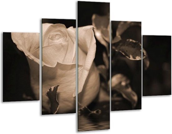 Glasschilderij - Roos - Sepia, Bruin - 100x70cm 5Luik - Geen Acrylglas Schilderij - GroepArt 6000+ Glasschilderijen Collectie - Wanddecoratie- Foto Op Glas