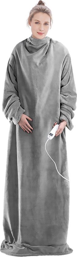 Elektrische deken met mouwen - Fleece plaid - Knuffeldeken groot - Wasbare elektrische deken met 9 standen en timer - 195x125cm - Grijs