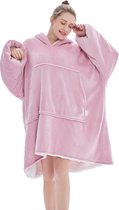 Q-Living Hoodie Deken - Oversized Hoodie - Plaid Met Mouwen - Snuggle Hoodie - Fleece Deken Met Mouwen - 1450 gram - Roze