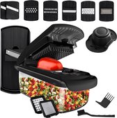 Met de handige draaiknop aan de zijkant van de mandoline kun je zelf de dikte van de ingrediënten bepalen. Van flinterdunne plakjes tot dikkere schijven, de keuze is aan jou. Dit maakt het snijden van verschillende ingrediënten, zoals uien, komkommers, kaas en wortels, eenvoudig en precies.