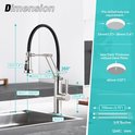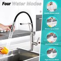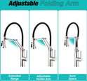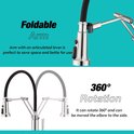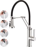 Goodivery ® Keukenkraan met 4 waterstralen verwijderbaar, eengreepsmengkraan voor aanrecht Mengkraan opvouwbaar met zwarte flexibele siliconen zachte slang, geborsteld