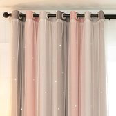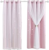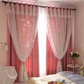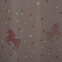 Gordijnen Kinderen 140x250m - raambekleding kind - met haakjes en ringen - Glow in the dark - Roze met eenhoorn