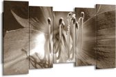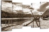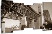 Canvas Schilderij Klok | Sepia | 150x80cm 5Luik.