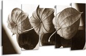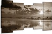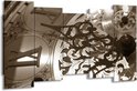 GroepArt - Canvas Schilderij - Klok - Sepia - 150x80cm 5Luik- Groot Collectie Schilderijen Op Canvas En Wanddecoraties