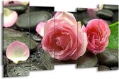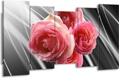 GroepArt - Canvas Schilderij - Roos - Roze, Grijs - 150x80cm 5Luik- Groot Collectie Schilderijen Op Canvas En Wanddecoraties
