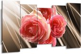 Canvas schilderij Roos | Roze, Grijs | 150x80cm 5Luik.