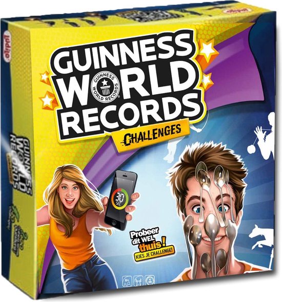 Het officiële GUINNESS WORLD RECORDS Challenge Bordspel test hoeveel jij weet over de de Guinness Wereld Records. Weet jij bijvoorbeeld wie de verste afstand onder water gefietst heeft? Of wie de hoogste hanenkam heeft? De meest vreemde, grappige en bijzondere Wereld Records komen aan bod. De 150 Vragenkaarten bevatten aan één kant een foto van een recordhouder van GUINNESS WORLD RECORDS en aan de andere kant een recordbeschrijving met vier gerelateerde vragen (in totaal 600 vragen). Ook zijn er 20 Challenge kaarten. Ben jij in staat om de Challenge goed en snel uit te voeren en zelf een record te vestigen?