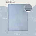 - Premium traagschuim is 2 cm dik en keert sneller terug op maat (binnen 1-2 dagen) vergeleken met goedkopere alternatieven. Het babyspeelkleed wordt opgevouwen als deken geleverd en hoeft, in tegenstelling tot vacuümverpakte babykruipmatten, niet gestreken te worden. Gecomprimeerde verpakkingen besparen ruimte tijdens transport en verminderen de CO2-uitstoot.