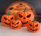 Halloween pompoen theelichthouder - klei - oranje - 14 x 13 cm - windlichten