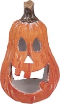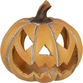 Theelichthouder pompoen gemaakt van gehard klei. Halloween decoratie theelichthouder/windlicht met een formaat van 14 x 13 x 14 cm. Halloween thema decoratie en versiering.