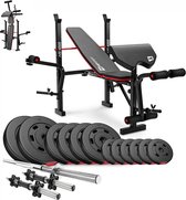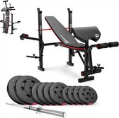 Halterbank INC. 35 kg GEWICHTEN - Sportbank - Fitnessbank + halterschijven + 2 dumbbell stangen - multifunctioneel - volledig instelbaar – Opklapbaar