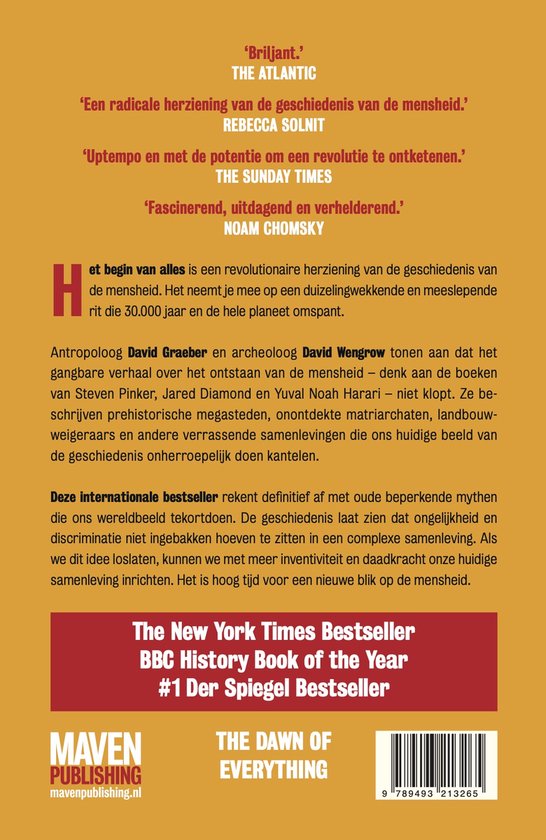 Deze internationale bestseller rekent definitief af met oude beperkende mythen die ons wereldbeeld tekortdoen. De geschiedenis laat zien dat ongelijkheid en discriminatie niet ingebakken hoeven te zitten in een complexe samenleving. Als we dit idee loslaten, kunnen we met meer inventiviteit en daadkracht onze huidige samenleving inrichten. Het is hoog tijd voor een nieuwe blik op de mensheid.