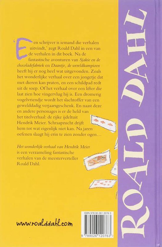 'Een schrijver is iemand die verhalen uitvindt,' zegt Roald Dahl in dit boek. Na de fantastische avonturen van Sjakie en de chocoladefabriek en De fantastische Meneer Vos heeft hij er nog heel wat uitgevonden. Zoals het wonderlijke verhaal over een jongetje dat met dieren kan praten, en een schildpad redt uit de soep. Of het verhaal over een lifter die laat zien hoe vingervlug hij is. Een dromerig vogelvriendje wordt het slachtoffer van een gewelddadig verjaardagsgeschenk. En naast deze en andere personages is er de held van het titelverhaal: de rijke ijdeltuit Hendrik Meier. Gierigheid drijft hem tot wat eigenlijk niet kan. Na jaren oefenen slaagt hij erin te zien zonder ogen...