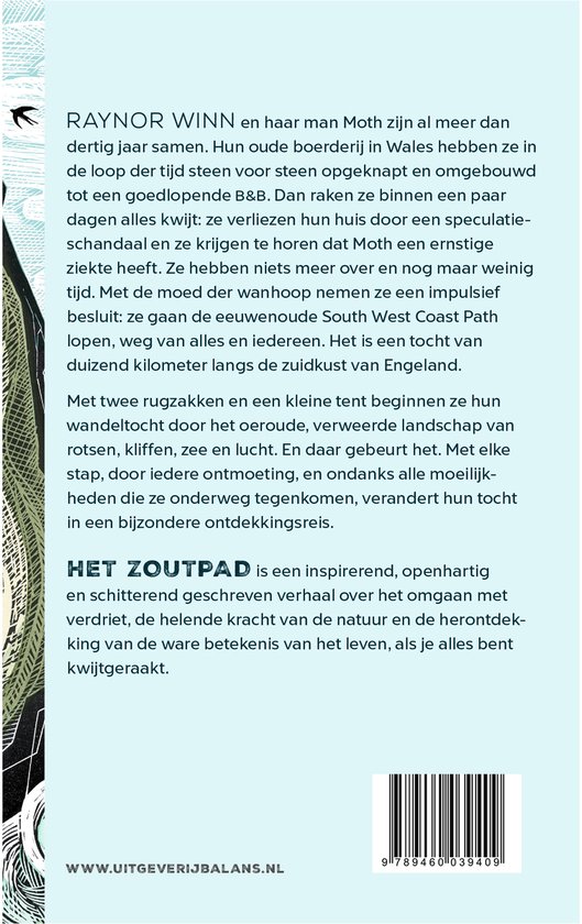 Raynor Winn en haar man Moth zijn al meer dan dertig jaar samen. Hun oude boerderij in Wales hebben ze in de loop der tijd steen voor steen opgeknapt en omgebouwd tot een goedlopende B&B. Dan raken ze binnen een paar dagen alles kwijt: ze verliezen hun huis door een speculatieschandaal en ze krijgen te horen dat Moth een ernstige ziekte heeft. Ze hebben niets meer over en nog maar weinig tijd. Met de moed der wanhoop nemen ze een impulsief besluit: ze gaan de eeuwenoude South West Coast Path lopen, weg van alles en iedereen. Het is een tocht van duizend kilometer langs de zuidkust van Engeland. Met twee rugzakken en een kleine tent beginnen ze hun wandeltocht door het oeroude, verweerde landschap van rotsen, kliffen, zee en lucht. En daar gebeurt het. Met elke stap, door iedere ontmoeting, en ondanks alle moeilijkheden die ze onderweg tegenkomen, verandert hun tocht verder in een bijzondere ontdekkingsreis. Het zoutpad is een inspirerend, openhartig en schitterend geschreven verhaal over het omgaan met verdriet, de helende kracht van de natuur en de herontdekking van de ware betekenis van het leven, als je alles bent kwijtgeraakt.