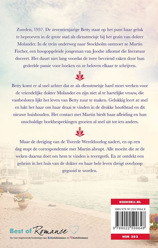 Zweden, 1937. De zeventienjarige Betty staat op het punt haar gelukte beproeven in de grote stad als dienstmeisje bij het gezin van dokter Molander. In de trein onderweg naar Stockholm ontmoet ze Martin Fischer, een hoogopgeleide jongeman van Joodse afkomst die literatuur doceert. Het duurt niet lang voordat de twee bevriend raken door hun gedeelde passie voor boeken en ze beloven elkaar te schrijven.