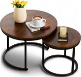 Home-Heaven® Salontafels Rond Zwart Hout – Bijzettafel Set Van 2 – Salon tafel Ø60cm & 40cm