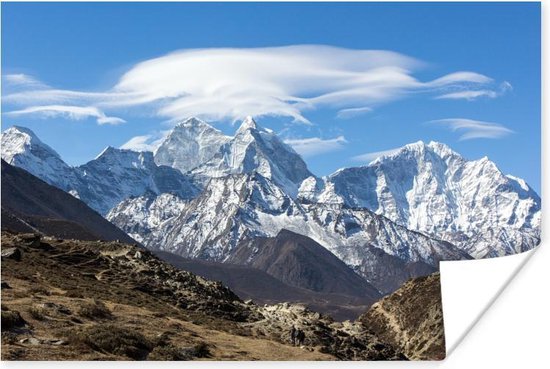 Himalaya-berg in Nepal Poster 180x120 cm - Foto print op Poster (wanddecoratie woonkamer / slaapkamer) / Azië Poster XXL / Groot formaat!