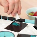 Maar we waren erg nieuwsgierig en hebben het spel snel speelklaar gemaakt, dat was eenvoudig: een sticker opplakken en de draaischijf installeren, de pionnen op de rand van de doos zetten en het whiteboard klaarleggen. Er zitten kaarten bij in 4 categorieën: praten, neuriën, uitbeelden en tekenen.