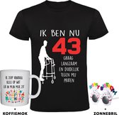 Hoera 43 jaar Heren T-shirt + Koffiemok + Happy birthday bril - 43e verjaardag - feest - grappig - verjaardag - cadeau